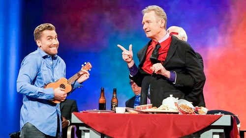 In a ridiculous round of "Weird Newscasters", Wayne plays an Aisha Tyler robot and Ryan a mad zombie scientist. There's a Plumber-themed "Hoedown" and drunk Olympians in "Scenes from a Hat". (S4, E11)