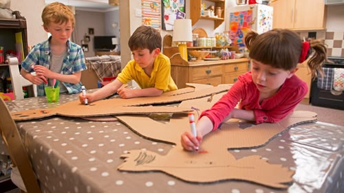 Topsy and Tim enjoy making life-sized cardboard cut-outs of themselves.