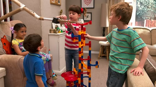 Tim makes a marble run with the help of his friend Tony Welch.