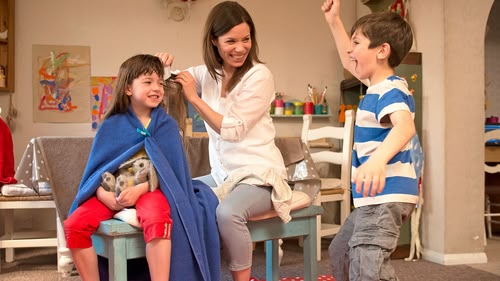 Mummy and Dad are going out, and the twins are being looked after by their new babysitter.