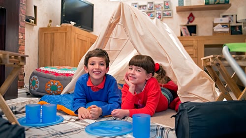 Topsy and Tim get ready to go camping for the weekend.