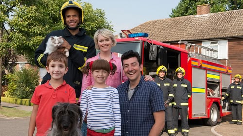 Mrs Higley-Pigley's cat, Tiger, is stuck up the tree outside Topsy and Tim's house.