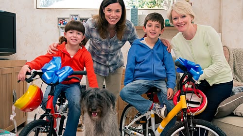 The twins are excited because Grandma has given them brand new bikes with stabilisers.