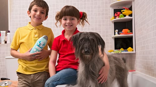 Grandma comes over to babysit Topsy and Tim and lets them bath Mossy the dog!