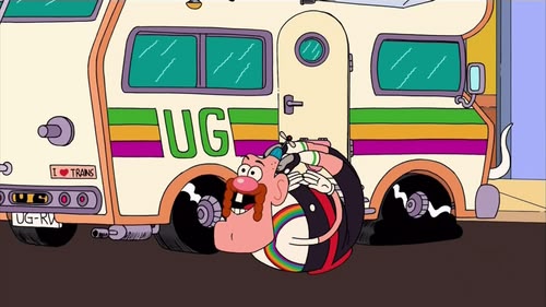 On the day of their big auto race, the RV suffers a flat tire! UG fills in temporarily but finds that he actually enjoys life as a wheel.