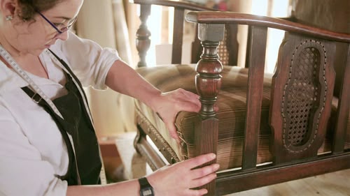 Suzie Fletcher and Sonnaz Nooranvary restore a badly damaged suspended chair from the 60s.