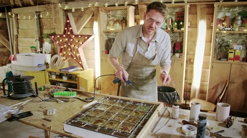 Episode 3. Stephen Kember and Will Kirk work on a music box that is housed in a replica Swiss chalet.