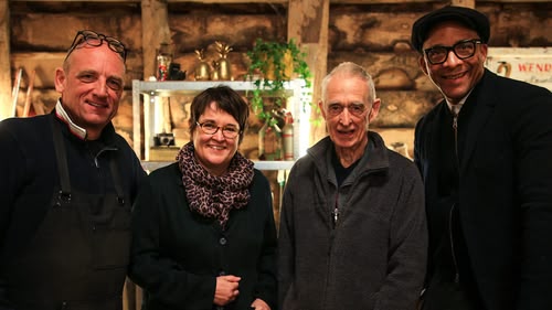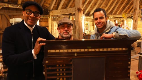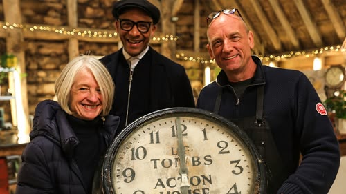 Steve and Dominic are tasked with repairing a clock that stood for decades above the entrance of a newsagent's. Sonnaz works on a wooden barber's chair.