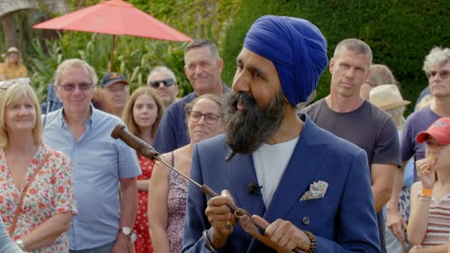 Fiona Bruce presents from the grounds of Belmont House in Kent, where she encounters a disguised Michael McIntyre preparing a prank for his Saturday night show.