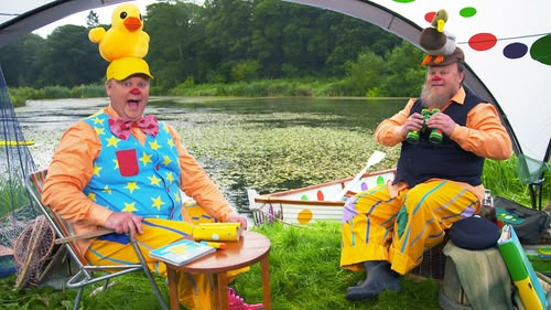 On the River. Justin and his friends paddle a bell boat, and Mr Tumble goes duck spotting.