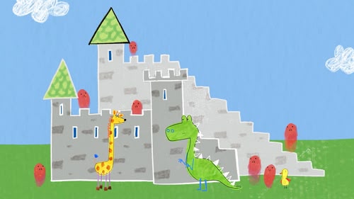 Pablo's mum measures a wall with a 'number snake', which Pablo follows into the Art World.