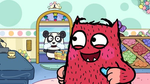 Love Monster and Elder Panda lose each other in the Everything but Sprinkles Store.