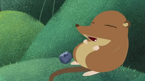 Oona and Baba help Mossy gather berries for a shrew crew feast.