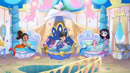 Isadora is invited to a mermaid sleepover with Princess Delphina. Together with Delphina and Adelina, Isadora goes on a night swim through Mer-City. (S2, ep 4)