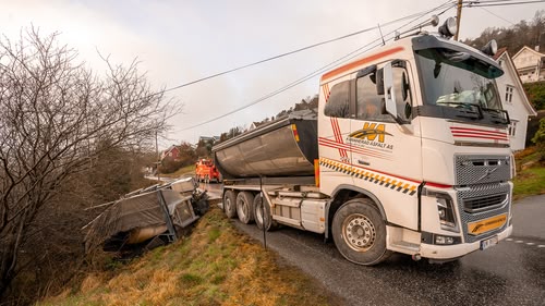 A truck and trailer carrying asphalt has crashed above a steep bank, and Thord must save it before the ground gives way and causes a mudslide. (S5, ep 4)