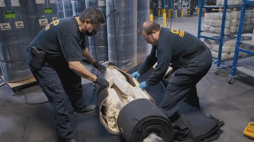Officers intercept an arsenal of weapons being smuggled into Mexico. A consignment of Fentanyl is discovered in a freezer.
