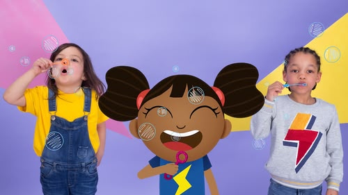 A celebration of communicating and encouraging children to talk with a focus on one word, showing various visualisations of a word in a rhythmical, bouncy, humorous way!