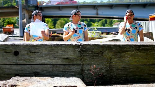 Ricky makes some ninja art while searching for his lucky trunks.