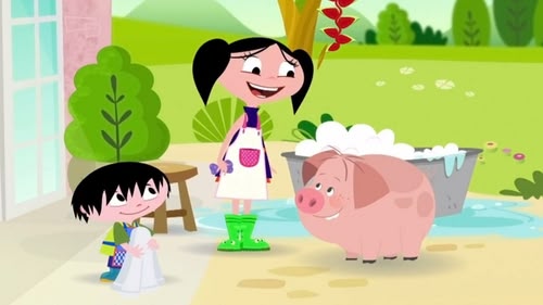 The trio are giving Grandma's pig a bath. But as they turn their backs, he's right back to wallowing in the mud! Why do pigs love the mud so much? (S3, ep 5)