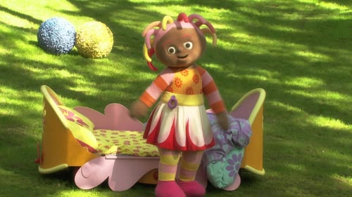 Upsy Daisy is singing with her megaphone in the garden. Here comes Upsy Daisy's bed - but Upsy Daisy isn't tired and sends her bed away.
