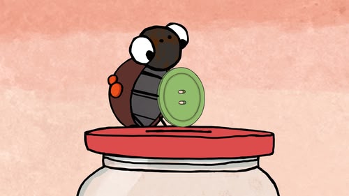 Bug's plant is looking droopy, but his button collecting seems to be the cause...
