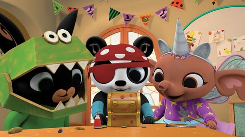 Bing scares Charlie when he dresses as Biteysaurus for Halloween.