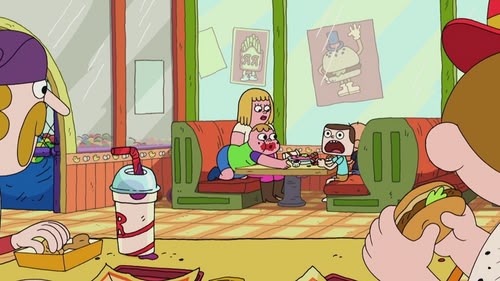 Clarence's Mom treats Clarence, Jeff and Sumo to an afternoon at Rough Riders Chicken, a fast food restaurant with a play emporium.