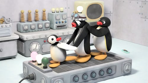 During a blackout, Pingu and Pinga discover that their inventor neighbour/neighbor is able to generate his own electricity. (S1, ep 7)