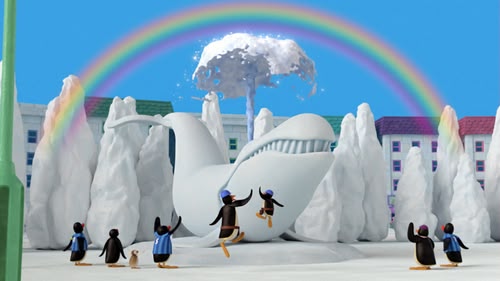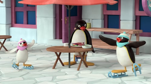 Pingu Glides to Fame: Pingu and Pinga begin figure skating after watching skaters at the rink. As the crowd cheers them on, the two take their ice show into the city. (S1, ep 18)