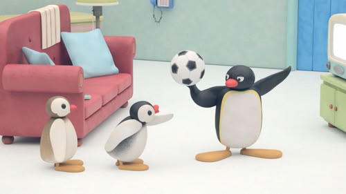 Pingu is babysitting at home, but when Pinga and her friend's indoor football/soccer game gets out of hand, he decides to take it outside. (S1, ep 3)