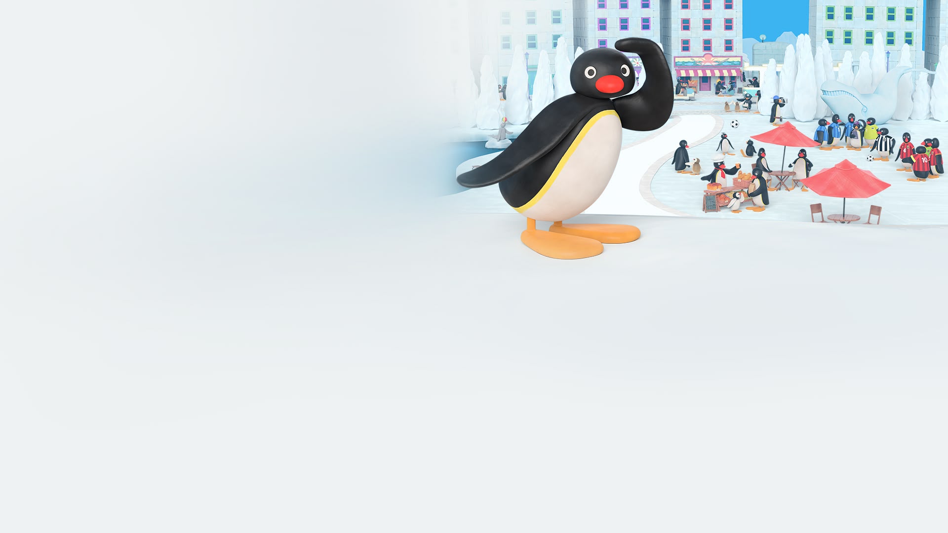 Pingu decides to stand watch over the freshly paved walkway until the ice hardens, so no one will leave footprints. (S1, ep 2)