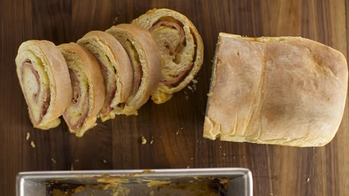 Ree makes breakfast, lunch and dinner with three ingredients. To start the day, she makes a ham and cheese loaf, then penne pecorino and mango chicken salsa for dinner. S19, Ep7