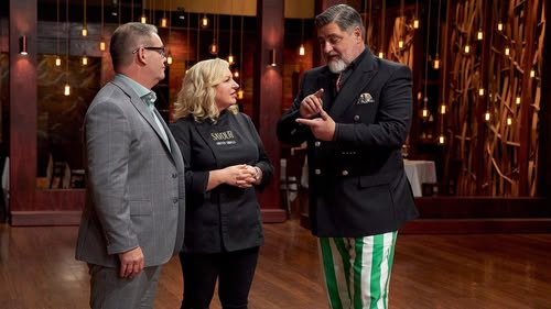 As the contest reaches the halfway stage, three hopefuls compete in an elimination challenge, creating a dish from a choice of proteins and other ingredients hidden beneath cloches.