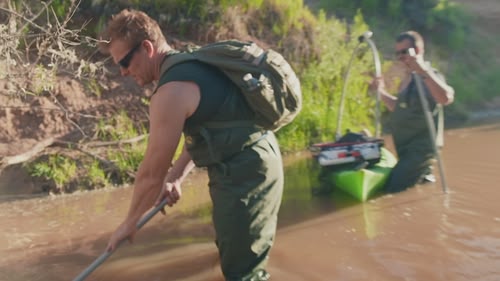 As the team begins drilling in the Mesa, where a possibly metallic object is buried, they have a startling encounter. (S5, ep 6)