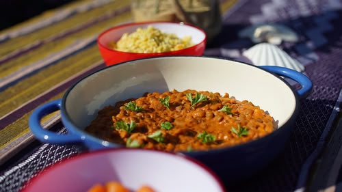 Iaia is cooking a delicious lentil stew from Guinea-Bissau called kansiye.