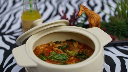 Pippa is making nyama, a chicken stew that uses tasty spring greens.