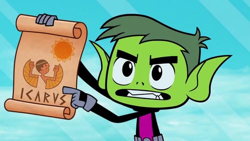 Robin tries to tell some Greek myths, but the other Titans give their own fractured versions instead.