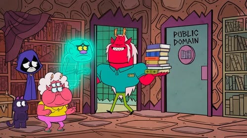 After Trigon proclaims the entire bookstore is his domain, Nana informs him that he has no control in the public domain.