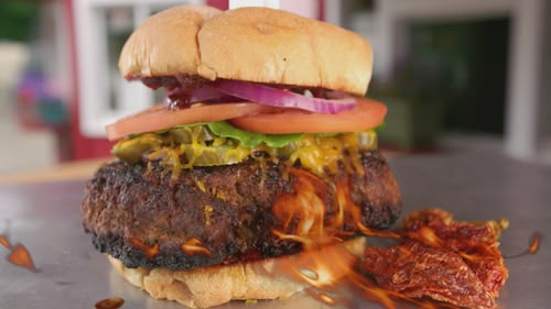 Casey Webb's tasty travels bring him to Manchester, New Hampshire. He takes part in a killer ghost pepper-infused inferno burger challenge.(S04,E16)