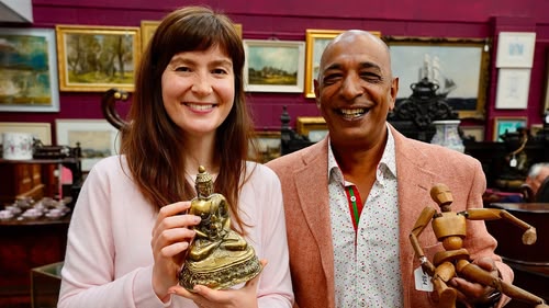 Natasha Raskin Sharp and Raj Bisram begin their road trip in Royal Tunbridge Wells. They uncover an expensive French sunburst clock and ammunition boxes.(S20,E21)