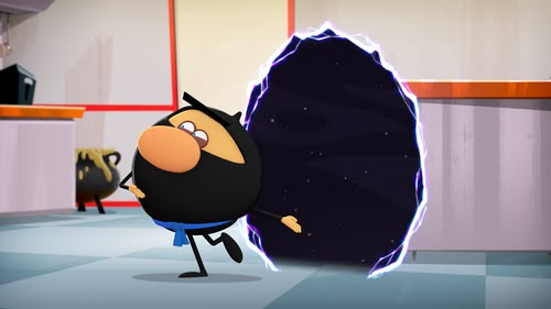 The Ninjas battle a hungry space blob as they try to fulfill an order for a flag.