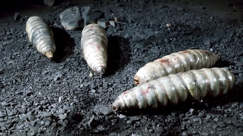 The Brigadier tries to seal the giant maggots in the mine, but they burrow up.