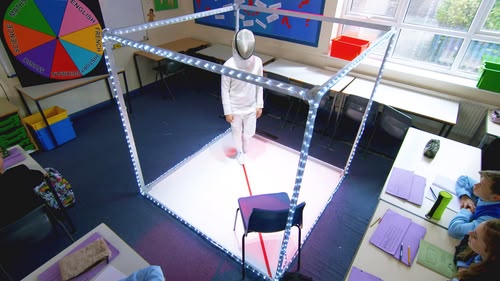 A pigeon is on the loose inside the school and the caretaker is determined to catch it.