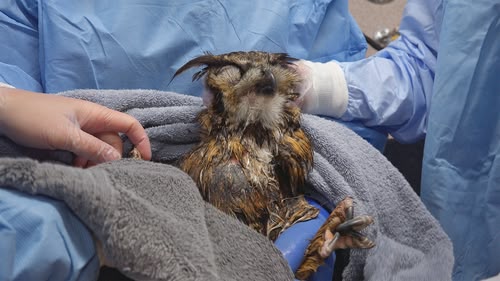 When a great horned owl arrives covered in oil, Dr Sherri puts it through a terrifying procedure to save its life. Meanwhile, boxes of young foxes need help. (S10, ep 3)