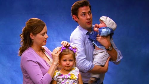 Dwight offers free family portraits to the office staff with the hope of getting closer to Angela's baby. Season finale. (S8, ep 24)
