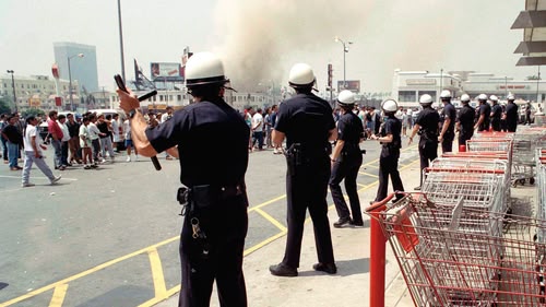 Part two looks at divided LA: the privileged white world that OJ inhabited and the one where millions of other black people lived a different reality. Racist language/violence.(2 of 5)