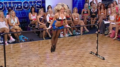 Some fantasies come true, as the remaining lucky training camp candidates model the iconic Dallas Cowboys Cheerleaders uniform during a cameo photo shoot. (S3, ep7)