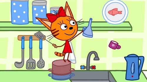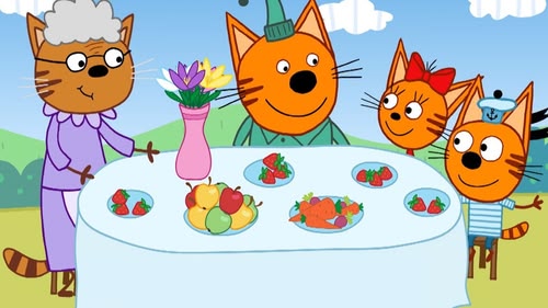 The kittens are inspired to cook after thinking their original porridge is a bit boring, so they try to make a salad for Mum and Dad. (S1, ep 25)