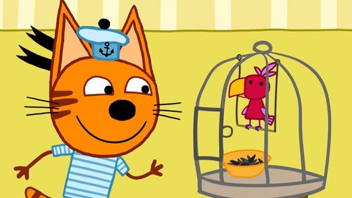 The family are taking care of next door's bird and the kittens try to talk to it. (S1, ep 14)
