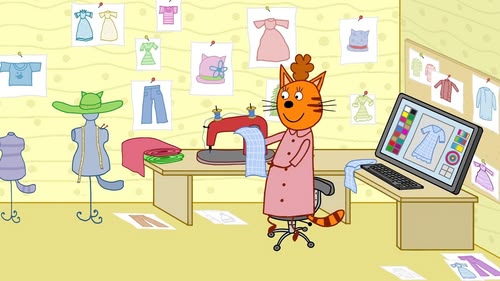 The kittens find Mommy's dress-makers dummy with a half-made coat on it and try to help out. (S2, ep 39)